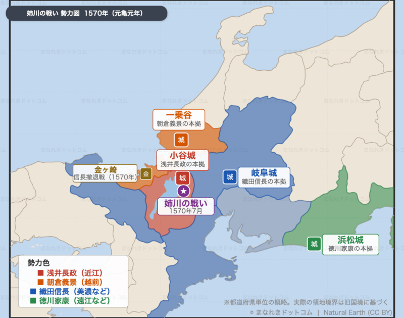 越前から京都へ至るルートは、北近江(現在の滋賀県北部)を通る必要がありました。この北近江には浅井長政が治める浅井氏が存在し、越前からの通過には外交的な調整が必要でした。