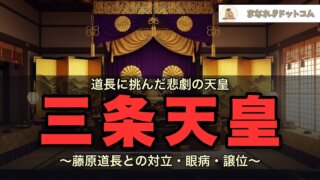 三条天皇(第67代)と藤原道長の対立を徹底解説。一帝二后問題・娍子の参内妨害・眼病・内裏炎上から退位まで。悲劇の天皇の生涯を中学歴史・高校日本史レベルでわかりやすく。