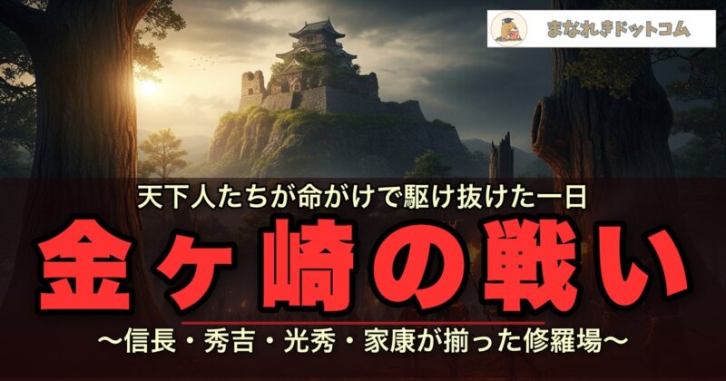 以上、金ヶ崎の戦い(退き口)のまとめでした!信長・秀吉・光秀・家康の四人が同じ修羅場にいた、まさに「天下人の卵」たちの試練の瞬間だったんだ。下の関連記事で秀吉や本能寺の変の記事もあわせて読んでみてね!